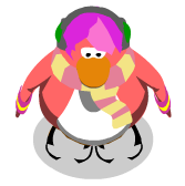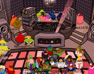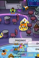Ella apareció en una fiesta con la Penguin Band, en una sala ella estaba con ellos (una solo para socios) en la que si entrabas te ganabas la estampilla de estar en la misma sala que ellos, desafortunadamente no podías reclamar tu fondo autografiado de ellos. Ella apareció en la fiesta de socios regalando el radio para bailar breakdance, pero ella aparece también en el backstage (sólo para socios). Su Puffle morado se llama Lolz y aparece en el vídeo musical La Fiesta Empieza Ya.