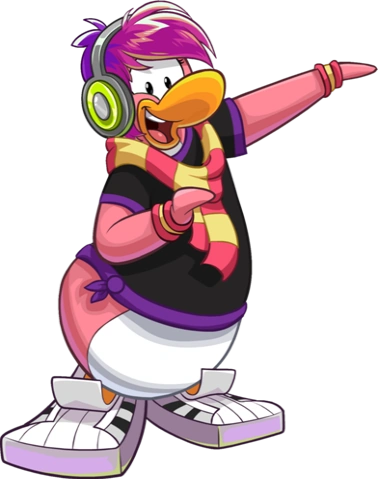 Cadence fue una rapera, cantante, DJ y una gran bailarina dentro del juego. Se la puede encontrar en el juego concurso de baile. Lleva una peluca de color rosa y morado, auriculares verdes, bufanda de color rosa y amarillo, muñequeras de color rosa y amarillo, y zapatillas deportivas blanco y negro. Todos estos elementos no están disponibles para comprar o ser usados por cualquier pingüino.