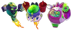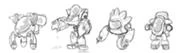 - Había cuatro tipos diferentes conocidos en el proyecto: un robot con dos botellas de salsa picante temáticas (Gran Rojo), un robot con manos de pescado (Pinzas de Pescado), un robot con la parte superior en forma de puffle y una rueda (Detonador), y un robot con una cápsula llena de bolas de nieve (que no llegaron al juego). Los Socios pueden personalizar y pintar su propia cuenta.
