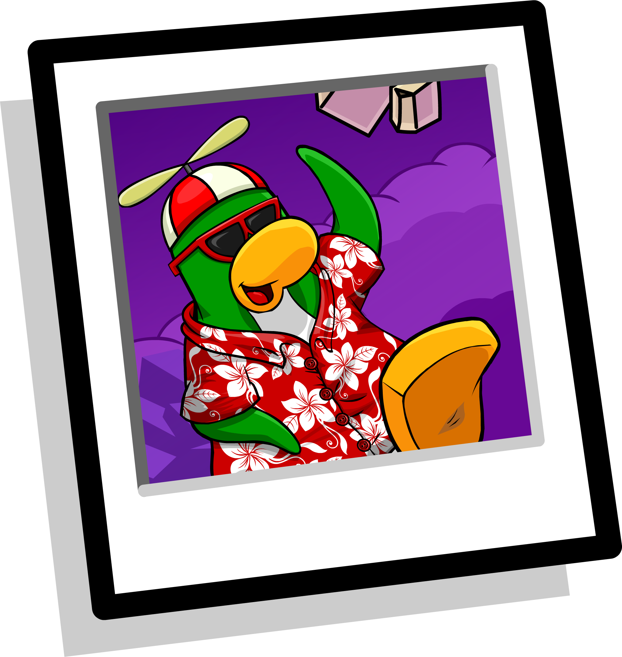 - A smiling, dancing blue puffle!