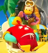 Blizzard is a penguin in Club Penguin who stars in the television special We Wish You a Merry Walrus, where he goes on an adventure with Roofhowse to help him save the holidays.[1] He also stars in Club Penguin: Monster Beach Party as an attendee of the beach party, and Club Penguin: Halloween Panic!, where he plays Halloween tricks on his friends and accidentally unleashes a swarm of unfriendly ghosts.