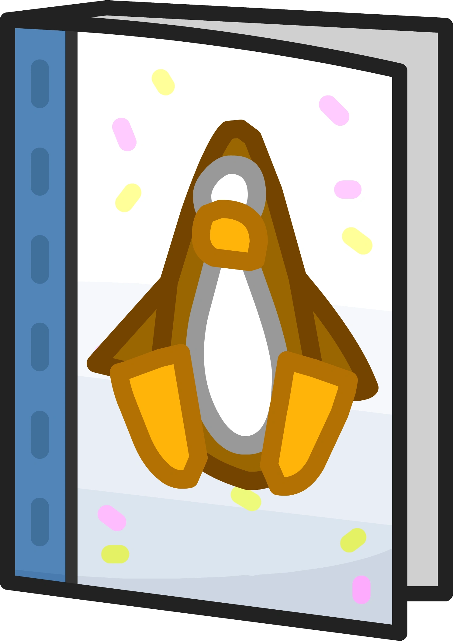 The Card from Dancing Penguin was an award in Club Penguin. It could have been obtained by completing the extra task in PSA Mission 3: Case of the Missing Coins. In order to obtain it, the player had to restore the power to the Night Club from the fuse box in the Boiler Room, due to the Electromagnet 3000 causing a power outage.