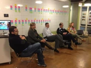 - The Stage: Many Club Penguin employees were seen seated in a room decorated like the Stage. This is where media presentations are held.