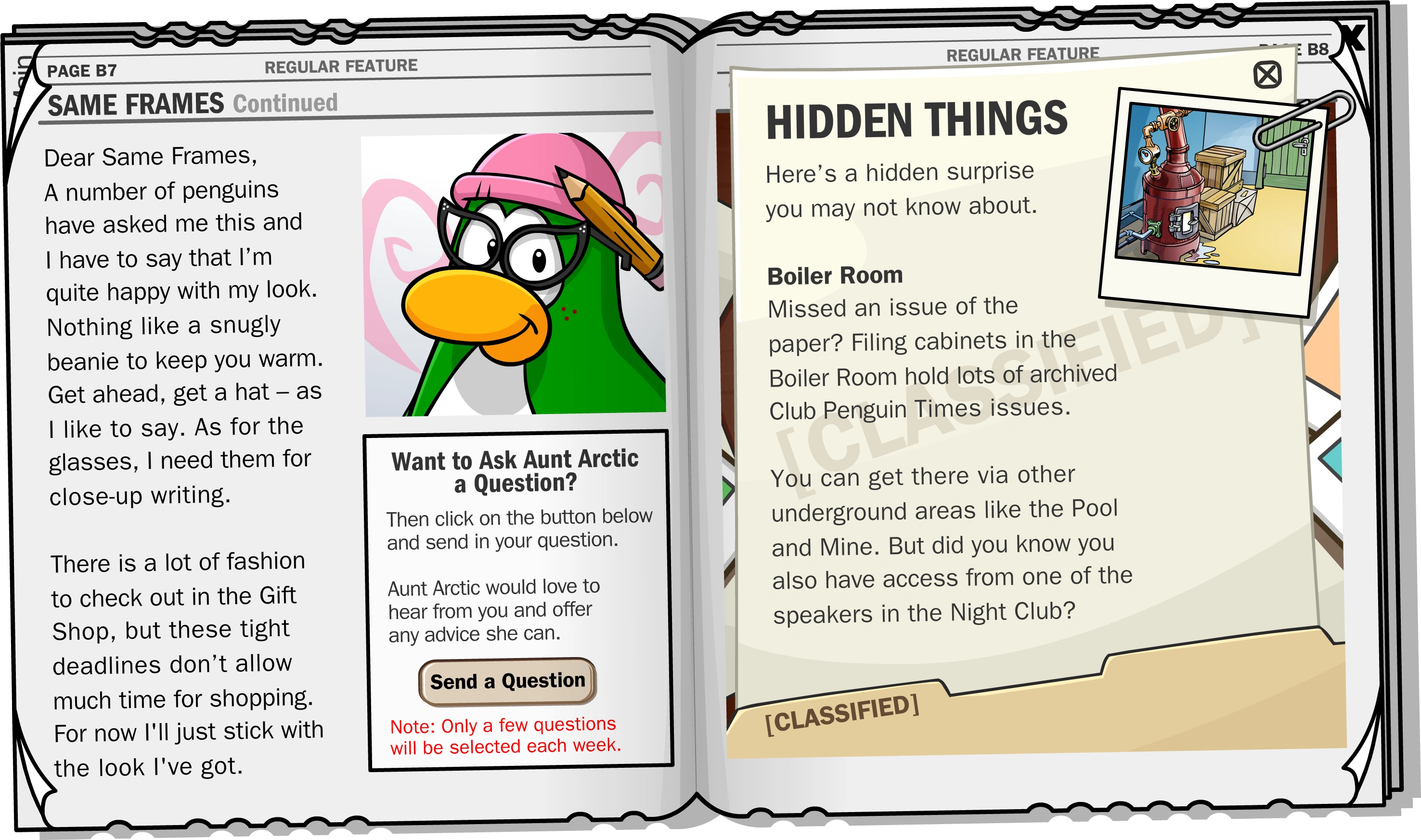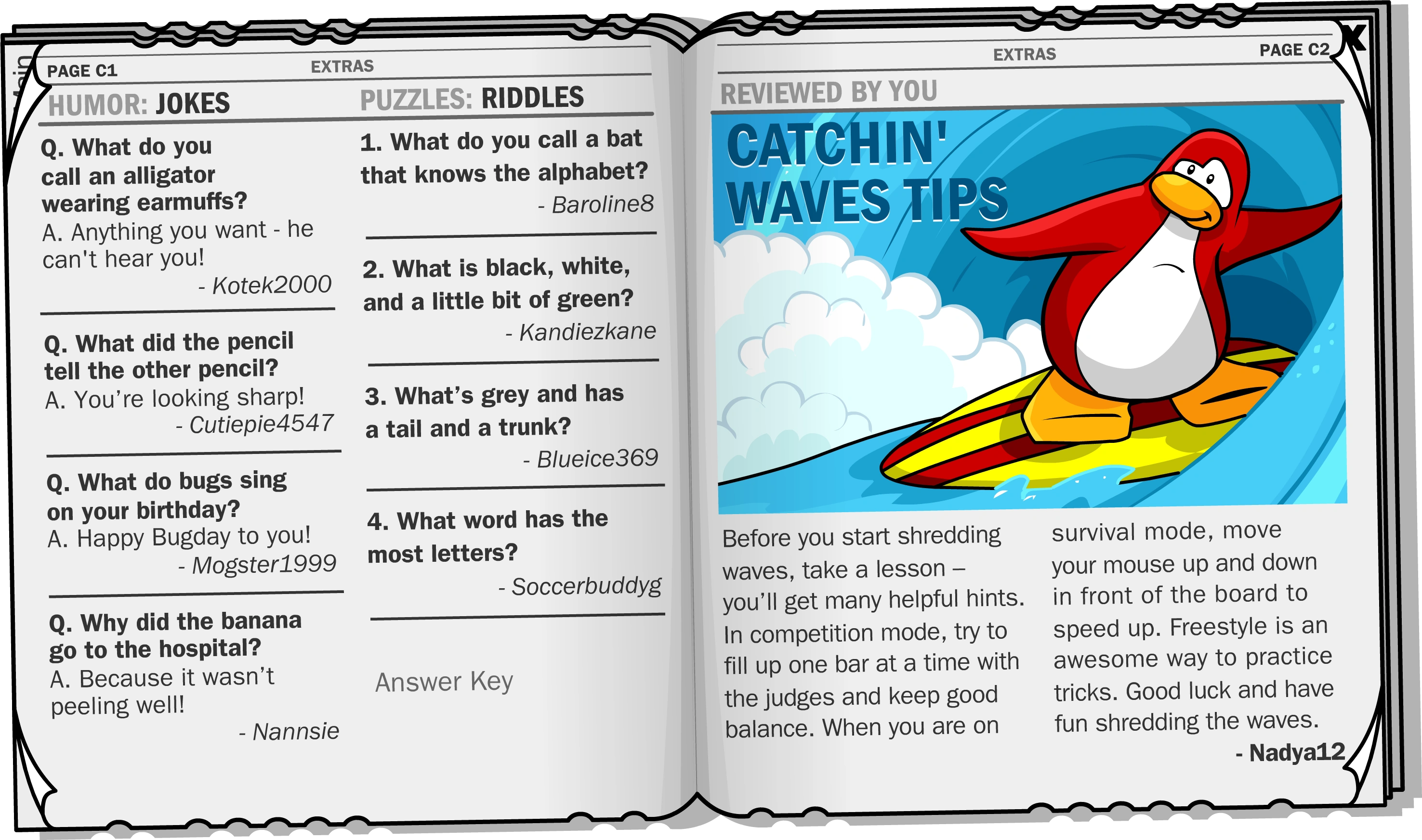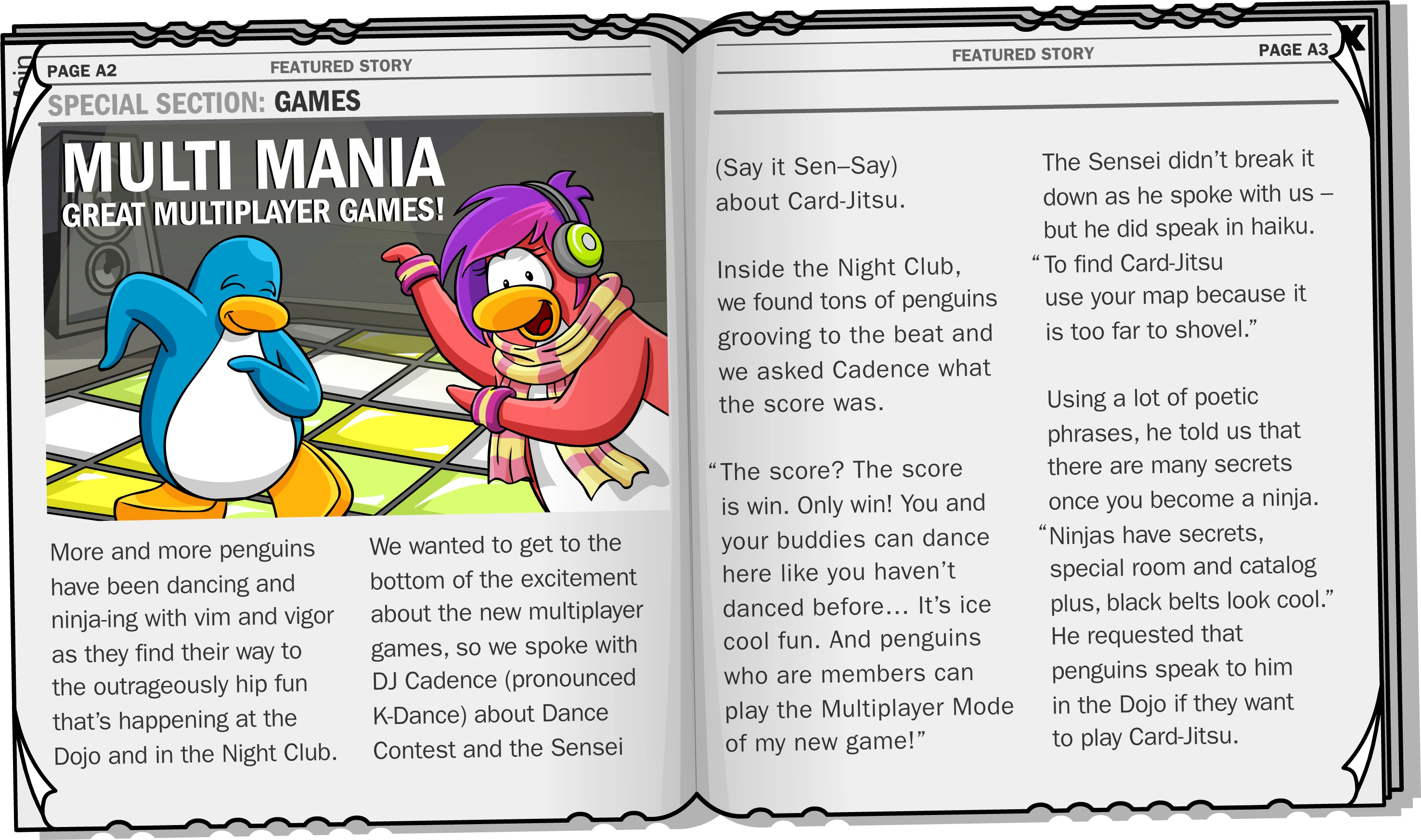 DID YOU KNOW?: "Ninjas are peace-loving penguins who are big fans of the arts. It is not uncommon to see ninjas at the Stage or even in the Book Room above the Coffee Shop."