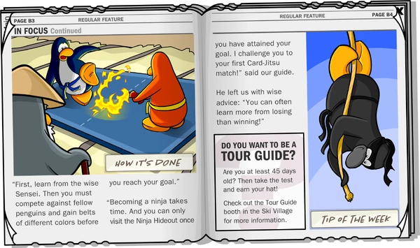 HOW IT'S DONE: "First of all, you need a pack of cards. Listen to the Sensei before challenging penguins to earn belts. Remember: water calms fire, snow freezes water, and fire melts snow."