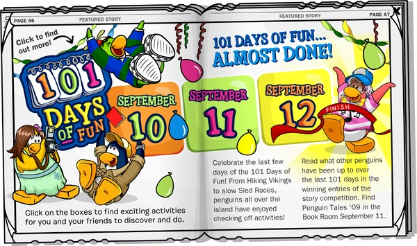 There’s a lot to discover and do in Club Penguin! Starting June 4, every day for 101 Days we’ll highlight a new way to explore the island. We’ve geared up for parties, events, and so much more.