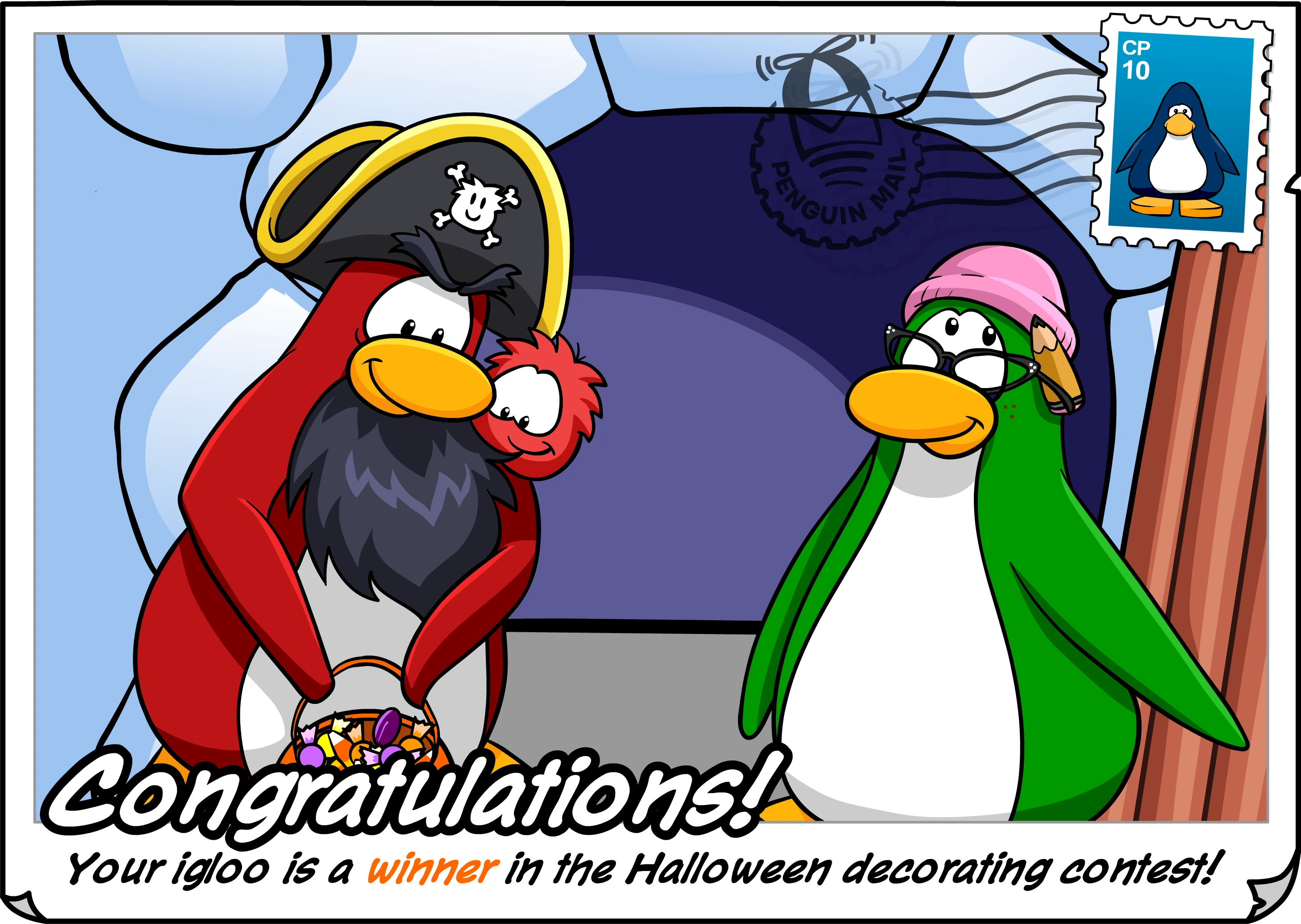 Igloo Contest Winner was a postcard in Club Penguin. It was sent to winners of the Halloween Decorating Igloo Contest in October 2008.
