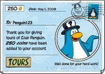 This is a list of Postcards in Club Penguin. This list is divided into two sections: "Current postcards" are the ones that were present in the game from the Penguin Mail update in July 2008 until the game's closure. "Old postcards" are the ones that were present from the introduction of postcards in May 2006 until the introduction of Penguin Mail in July 2008. Some of the old postcards stayed after the update, usually with updated artwork, although some did not return.