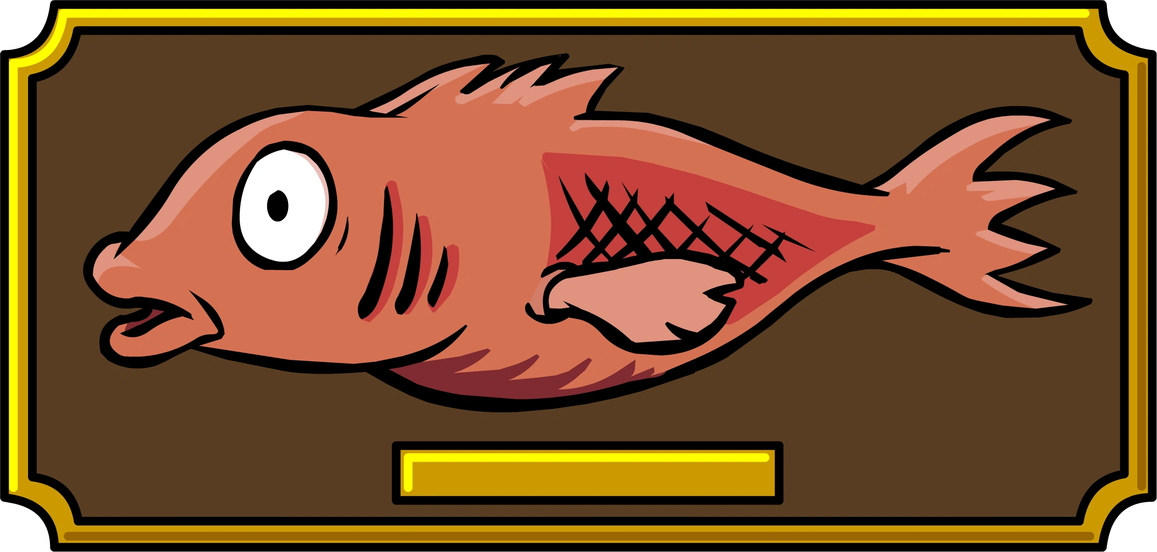 The Mullet Fish (formerly known as Mullet and Big Fish Trophy) was a wall furniture item in Club Penguin. It cost 600 coins each from the Better Igloos catalog, and only members could buy it.