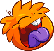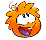 Orange Puffles are a species of puffle in Club Penguin. They came from the Orange Puffle Dimension and could only be adopted by members, or with a Treasure Book code. Orange puffles are described as being "zany" and curious. They have very big appetites, and are seemingly capable of eating anything they wanted to. They also liked to ride around in small, monster-truck like wagons.