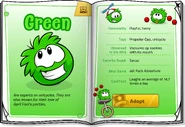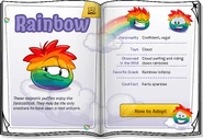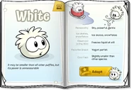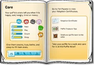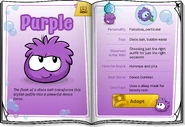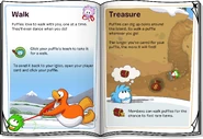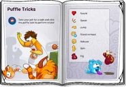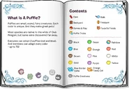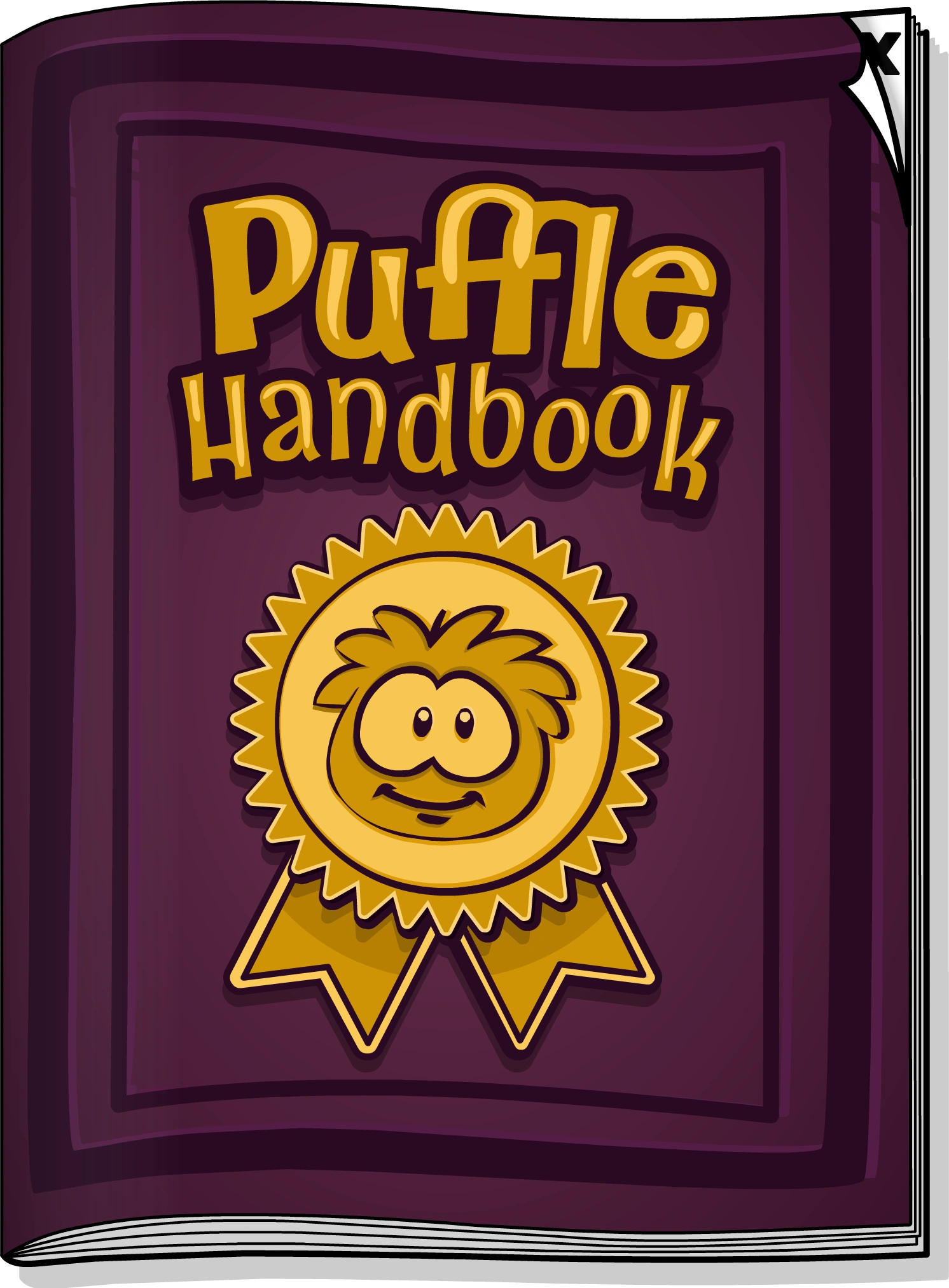 The Puffle Handbook is a book in Club Penguin. It was released on March 7, 2011, after the Pet Shop had its redesign. It gives you information about the different breeds and colors of puffles, and tips and tricks on caring for them. Like the former Adopt A Puffle catalog, you can adopt puffles from here since the Puffle Party 2014. You can see this book on the Puffle Interface but shows information only on the puffle color you have.