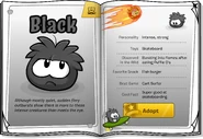 - In the Adopt A Puffle catalog the Black Puffle's Cool fact was that it can be very energetic. In the Puffle Handbook it says it always burps after eating. It's unknown why it was changed when every puffle burps after eating.