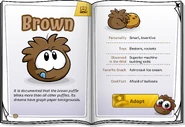It is documented that the brown puffle blinks more than all other puffles. It's dreams have graph paper backgrounds.