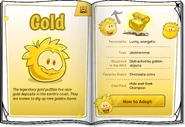 The legendary gold puffles live near gold deposits in the earth's crust. They are known to dig up rare golden items.