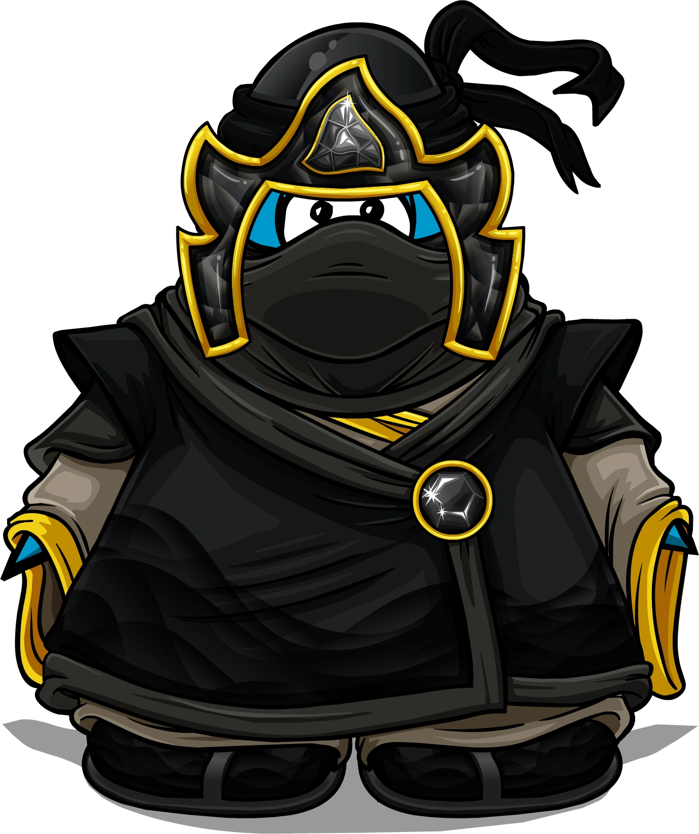 The Shadow Suit was an unreleased clothing set comprised of four items: the Shade Sandals, the Nightfall Coat, the Midnight Mask, and the Helmet of Shadows. The items were at one point planned to be obtainable through playing the Card-Jitsu App.[1] They are associated with the theoretical Card-Jitsu Shadow game.