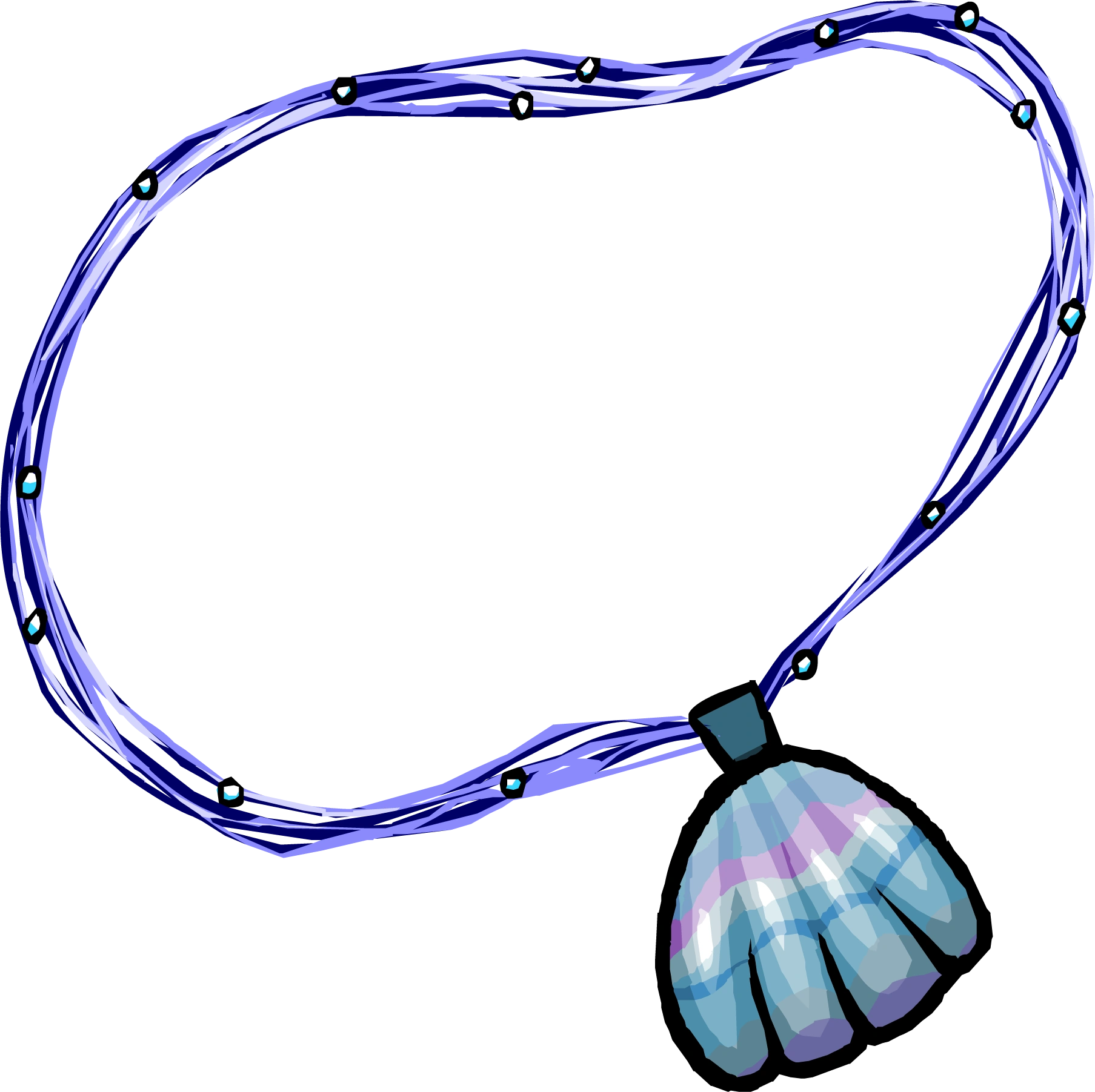 The Shell Necklace was a neck item in Club Penguin. All players could obtain it for free during Beach during the Water Party 2008. It could also have been obtained from Sushi Drop.