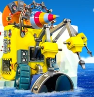 The Slush Rusher One was a large motor invented by Gary and Sydmull in the "Club Penguin: Monster Beach Party" special. It was meant to be used to move the iceberg Gary, Sydmull, and many other penguins were on back to Club Penguin Island after the Megalodon was released from it.