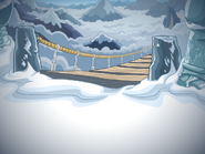 The Snow Dojo had a lot of snow piled on it, and rocky terrain, as it was on a mountain. There was a tunnel leading over to the Dojo, and a small cave where players can battle Tusk after mastering snow. There were two statues of Snow Ninjas, and which were on either side of a bridge, where Card-Jitsu Snow could be played.