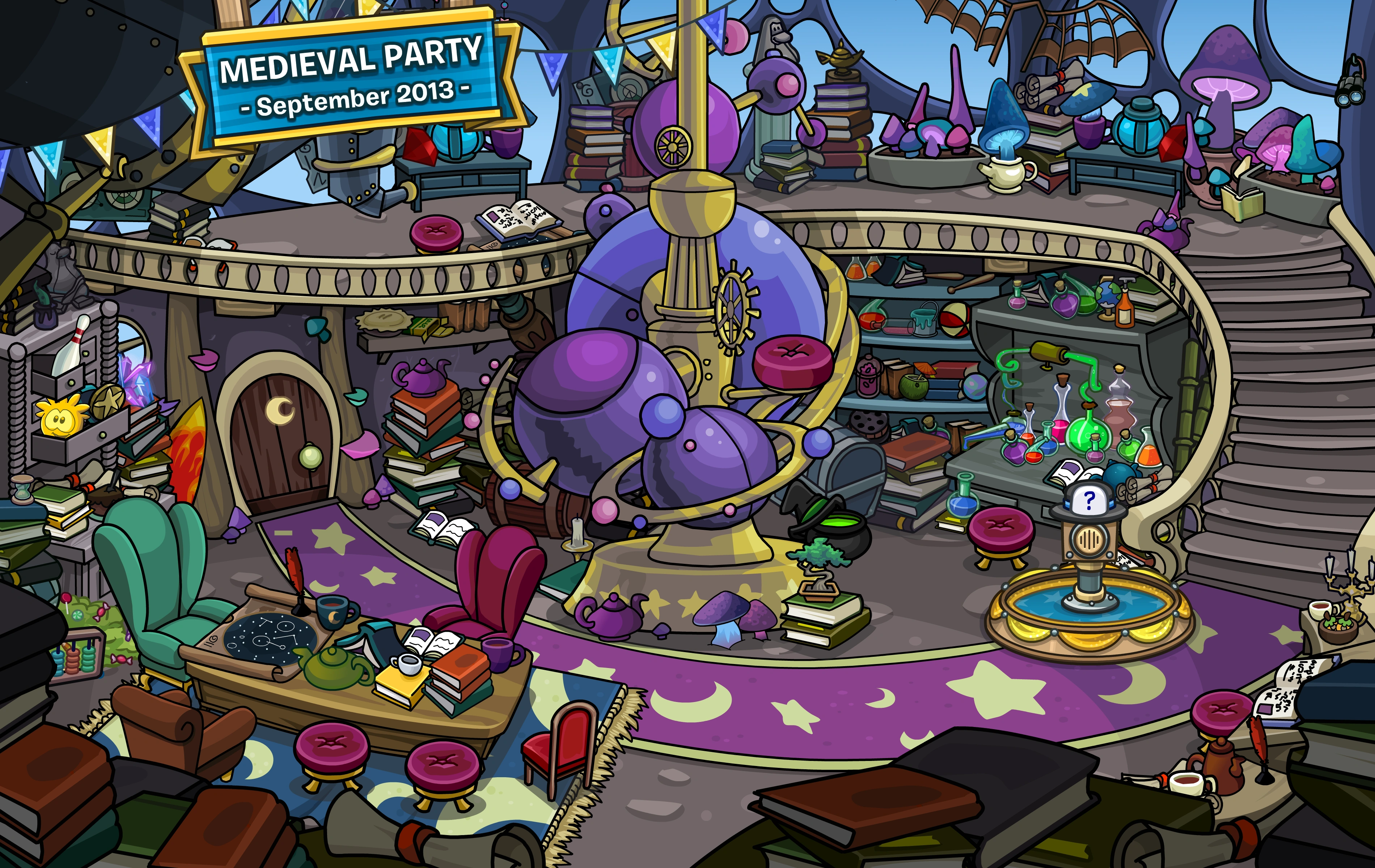 The Wizard Library was a party room accessible during the Medieval Party 2013 and 10th Anniversary Party. It was located in the upper right part of the School.